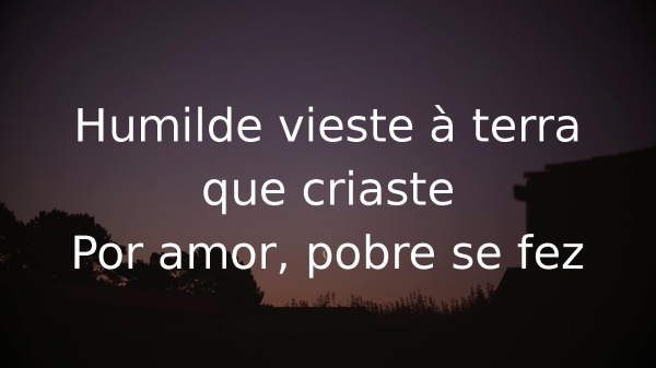 - Humilde vieste à terraque criastePor amor, pobre se fez