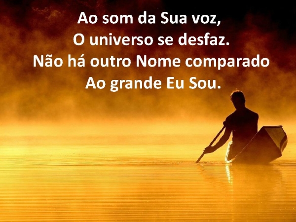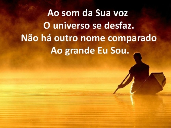 - Ao som da Sua voz, O universo se desfaz.Não há outro Nome comparado Ao grande Eu Sou.