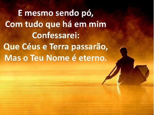 - E mesmo sendo pó,Com tudo que há em mimConfessarei:Que Céus e Terra passarão,Mas o Teu Nome é eterno.