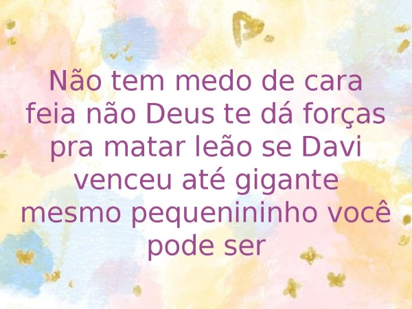 - Não tem medo de cara feia não deus te dá forças pra matar leão se Davi venceu até gigante mesmo pequenininho você pode ser