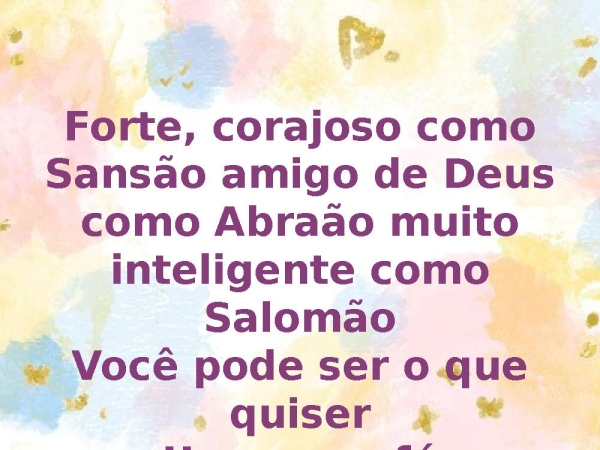 - Forte, corajoso como Sansão amigo de Deus como Abraão muito inteligente como SalomãoVocê pode ser o que quiserUse a sua fé