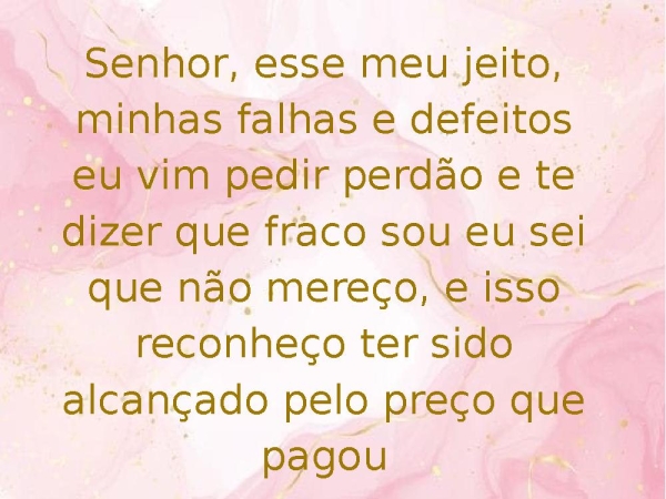 - Senhor, esse meu jeito, minhas falhas e defeitos eu vim pedir perdão e te dizer que fraco sou eu sei que não mereço, e isso reconheço ter sido alcançado pelo preço que pagou