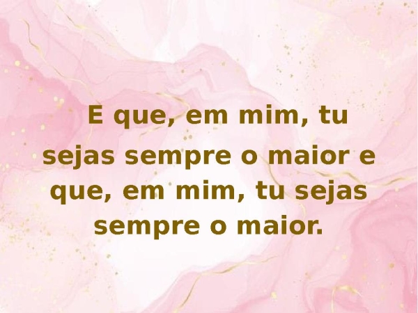 - E que, em mim, tu sejas sempre o maior e que, em mim, tu sejas sempre o maior.