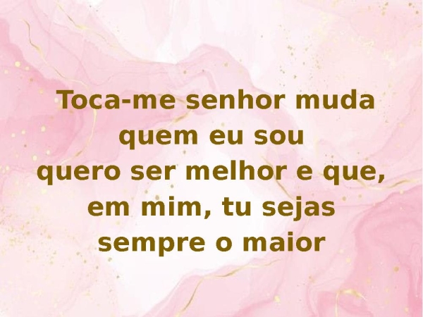 - Toca-me senhor muda quem eu souquero ser melhor e que, em mim, tu sejas sempre o maior
