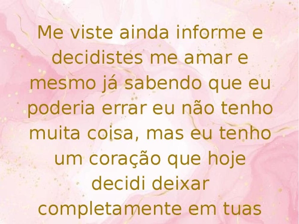 - Me viste ainda informe e decidistes me amar e mesmo já sabendo que eu poderia errar eu não tenho muita coisa, mas eu tenho um coração que hoje decidi deixar completamente em tuas mãos