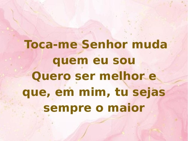 - Toca-me Senhor muda quem eu souQuero ser melhor e que, em mim, tu sejas sempre o maior