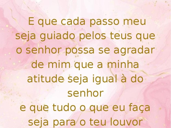 - E que cada passo meu seja guiado pelos teus que o senhor possa se agradar de mim que a minha atitude seja igual à do senhore que tudo o que eu faça seja para o teu louvor