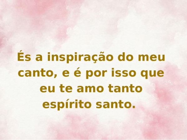 - És a inspiração do meu canto, e é por isso que eu te amo tanto espírito santo.