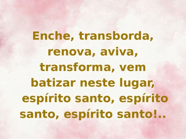 - Enche, transborda, renova, aviva, transforma, vem batizar neste lugar, espírito santo, espírito santo, espírito santo!..