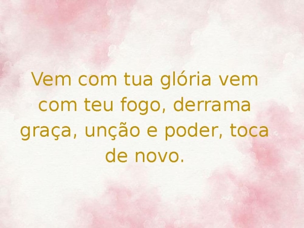 - Vem com tua glória vem com teu fogo, derrama graça, unção e poder, toca de novo.