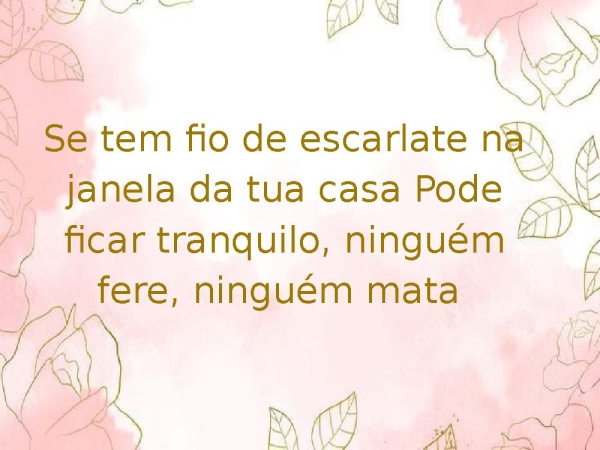 - Se tem fio de escarlate na janela da tua casa Pode ficar tranquilo, ninguém fere, ninguém mata
