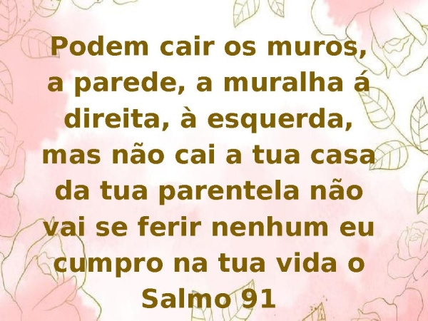 - Podem cair os muros, a parede, a muralha á direita, à esquerda, mas não cai a tua casa da tua parentela não vai se ferir nenhum eu cumpro na tua vida o Salmo 91