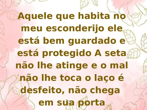 - Aquele que habita no meu esconderijo ele está bem guardado e está protegido A seta não lhe atinge e o mal não lhe toca o laço é desfeito, não chega em sua porta