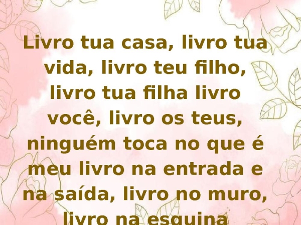 - Livro tua casa, livro tua vida, livro teu filho, livro tua filha livro você, livro os teus, ninguém toca no que é meu livro na entrada e na saída, livro no muro, livro na esquina