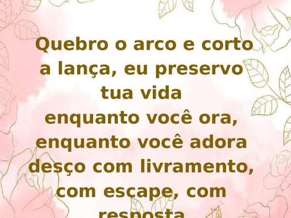 - Quebro o arco e corto a lança, eu preservo tua vidaenquanto você ora, enquanto você adora desço com livramento, com escape, com resposta