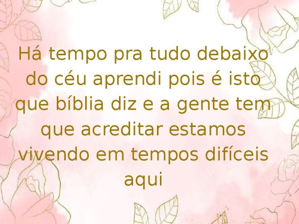 - Há tempo pra tudo debaixo do céu aprendi pois é isto que bíblia diz e a gente tem que acreditar estamos vivendo em tempos difíceis aqui