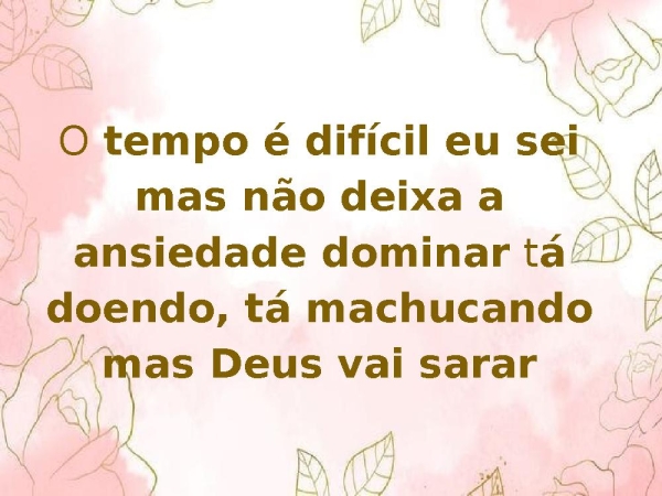 - O tempo é difícil eu sei mas não deixa a ansiedade dominar tá doendo, tá machucando mas Deus vai sarar