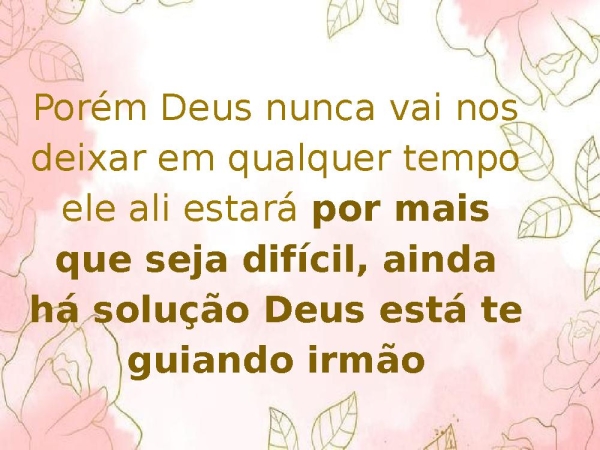 - Porém Deus nunca vai nos deixar em qualquer tempo ele ali estará por mais que seja difícil, ainda há solução Deus está te guiando irmão