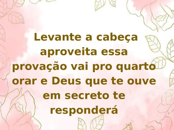 - Levante a cabeça aproveita essa provação vai pro quarto orar e Deus que te ouve em secreto te responderá