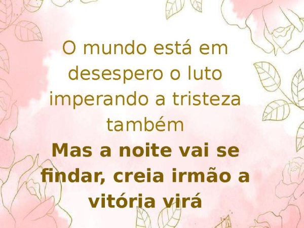 - O mundo está em desespero o luto imperando a tristeza tambémMas a noite vai se findar, creia irmão a vitória virá