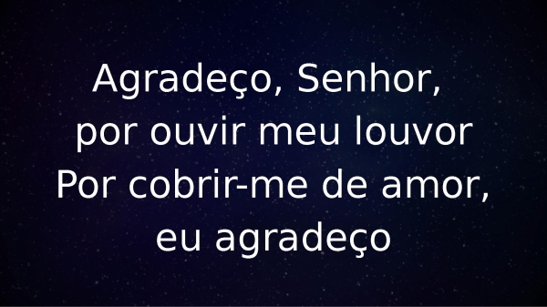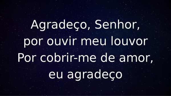 - Agradeço, Senhor,por ouvir meu louvorPor cobrir-me de amor,eu agradeço