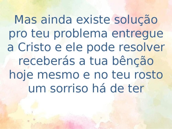- Mas ainda existe solução pro teu problema entregue a Cristo e ele pode resolverreceberás a tua bênção hoje mesmo e no teu rosto um sorriso há de ter