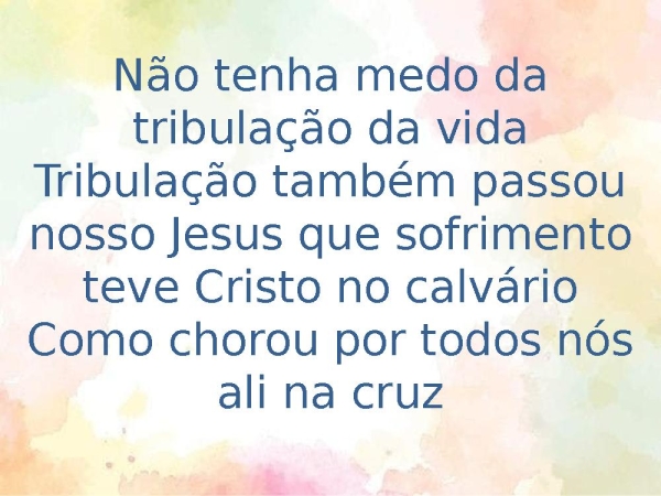 - Não tenha medo da tribulação da vidaTribulação também passou nosso Jesus que sofrimento teve Cristo no calvárioComo chorou por todos nós ali na cruz