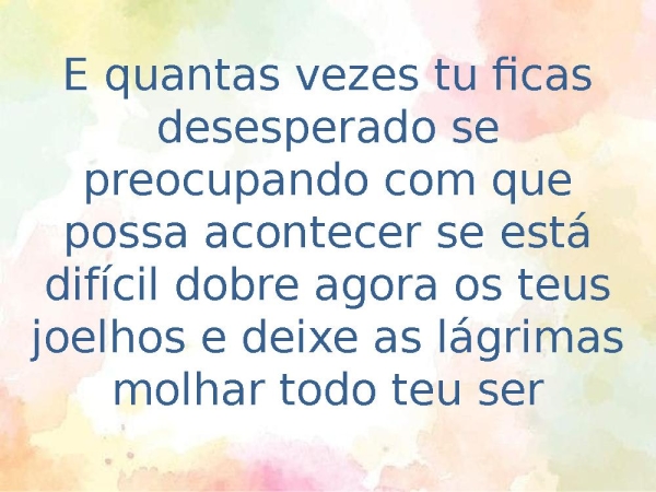 - E quantas vezes tu ficas desesperado se preocupando com que possa acontecer se está difícil dobre agora os teus joelhos e deixe as lágrimas molhar todo teu ser
