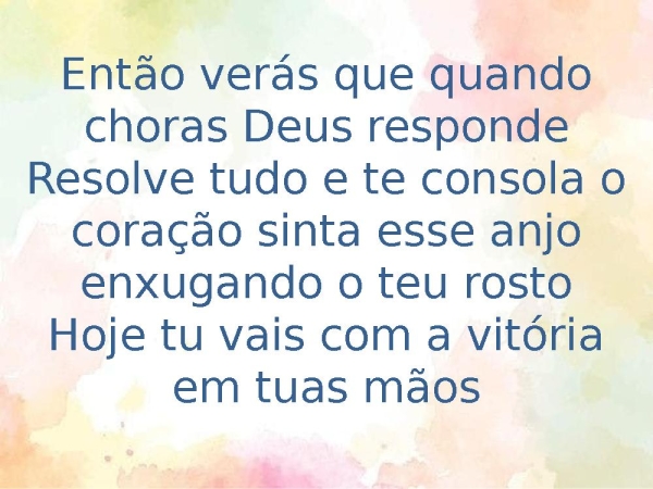 - Então verás que quando choras Deus respondeResolve tudo e te consola o coração sinta esse anjo enxugando o teu rostoHoje tu vais com a vitória em tuas mãos