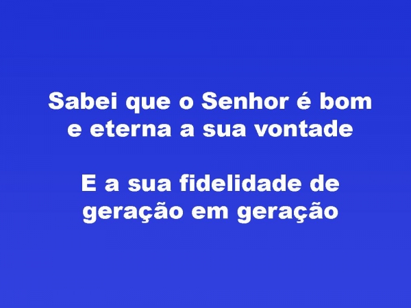 - Sabei que o Senhor é bome eterna a sua vontadeE a sua fidelidade de geração em geração