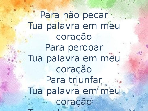 - Para não pecarTua palavra em meu coraçãoPara perdoarTua palavra em meu coraçãoPara triunfarTua palavra em meu coraçãoTua palavra em meu coraçãoVou receber um bom galardão
