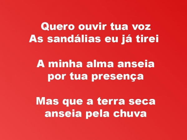 - Quero ouvir tua vozAs sandálias eu já tirei A minha alma anseia por tua presença Mas que a terra seca anseia pela chuva