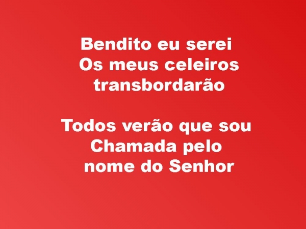 - Bendito eu serei Os meus celeiros transbordarãoTodos verão que sou Chamada pelo nome do Senhor