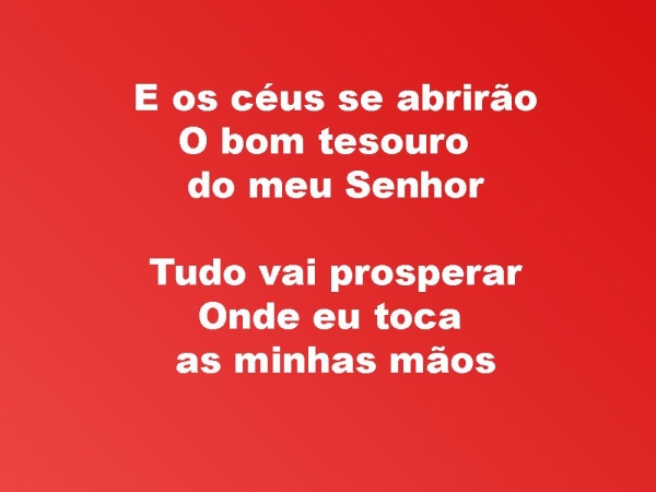 - E os céus se abrirãoO bom tesouro do meu SenhorTudo vai prosperarOnde eu toca as minhas mãos