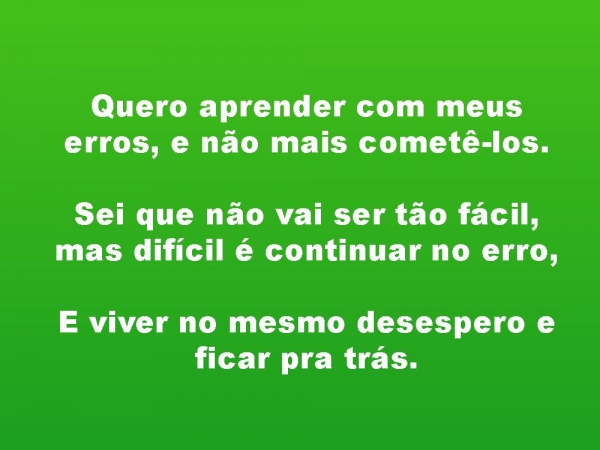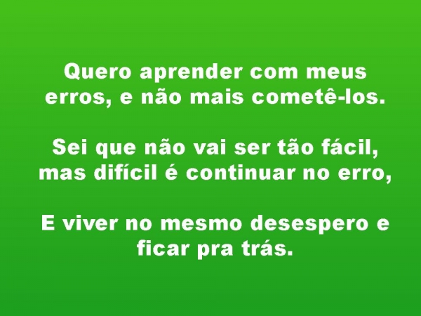 - Quero aprender com meus erros, e não mais cometê-los.Sei que não vai ser tão fácil, mas difícil é continuar no erro, E viver no mesmo desespero e ficar pra trás.