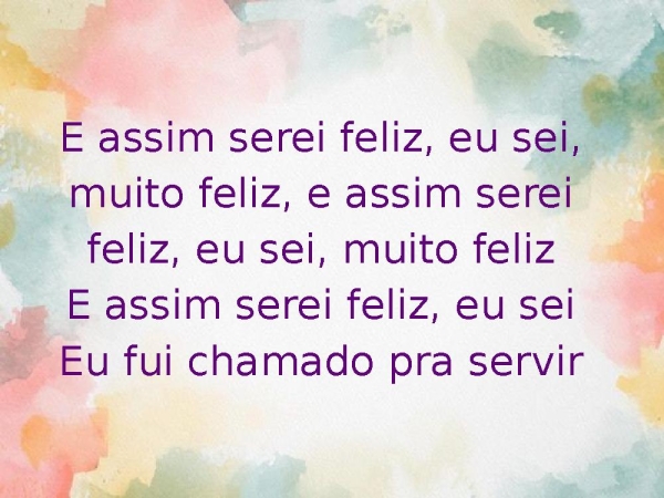 - E assim serei feliz, eu sei, muito feliz, e assim serei feliz, eu sei, muito felizE assim serei feliz, eu seiEu fui chamado pra servir
