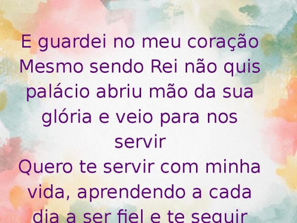 - E guardei no meu coraçãoMesmo sendo Rei não quis palácio abriu mão da sua glória e veio para nos servirQuero te servir com minha vida, aprendendo a cada dia a ser fiel e te seguir