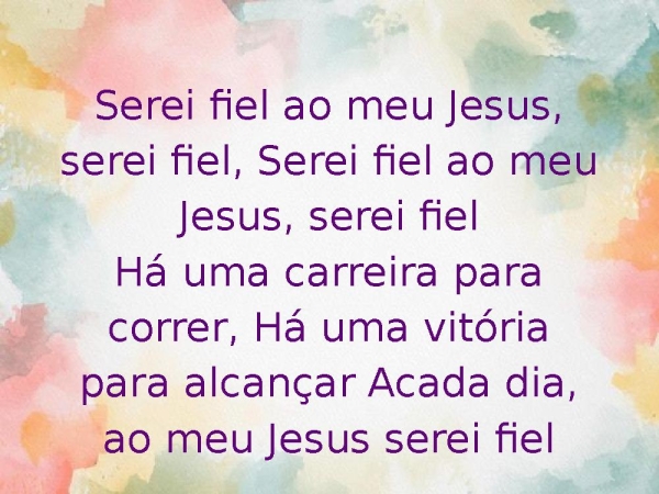 - Serei fiel ao meu Jesus, serei fiel, Serei fiel ao meu Jesus, serei fielHá uma carreira para correr, Há uma vitória para alcançar Acada dia, ao meu Jesus serei fiel