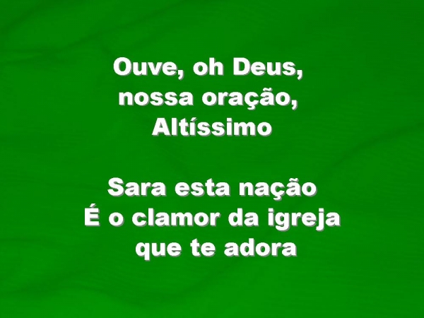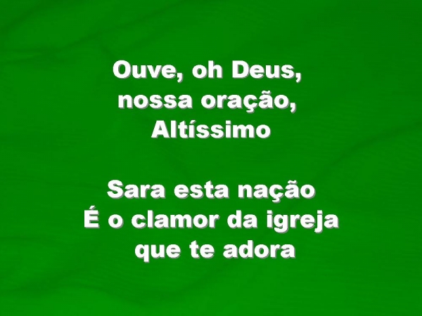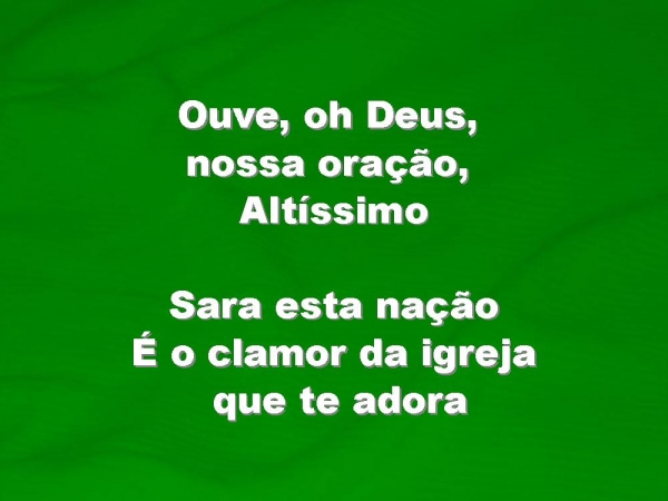 - Ouve, oh Deus, nossa oração, AltíssimoSara esta naçãoÉ o clamor da igreja que te adora