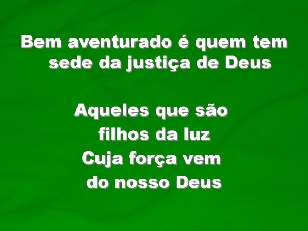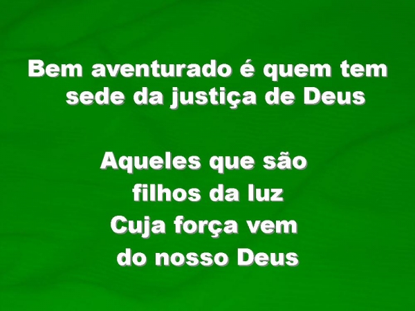 - Bem aventurado é quem tem sede da justiça de DeusAqueles que são filhos da luzCuja força vem do nosso Deus