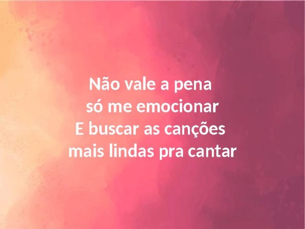 - Não vale a pena só me emocionarE buscar as canções mais lindas pra cantar