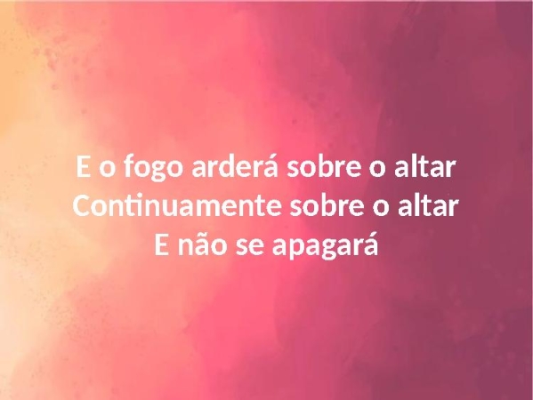 - E o fogo arderá sobre o altarContinuamente sobre o altarE não se apagará