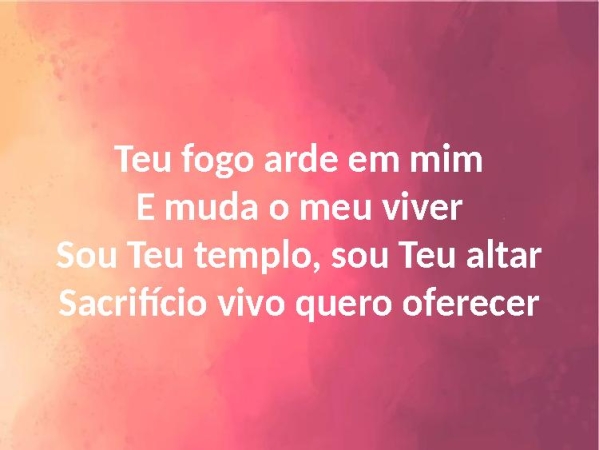 - Teu fogo arde em mimE muda o meu viverSou Teu templo, sou Teu altarSacrifício vivo quero oferecer