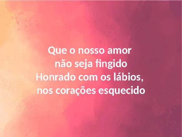 - Que o nosso amor não seja fingidoHonrado com os lábios, nos corações esquecido