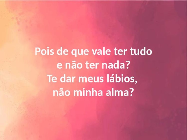 - Pois de que vale ter tudoe não ter nada?Te dar meus lábios, não minha alma?