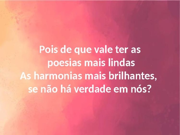 - Pois de que vale ter as poesias mais lindasAs harmonias mais brilhantes, se não há verdade em nós?