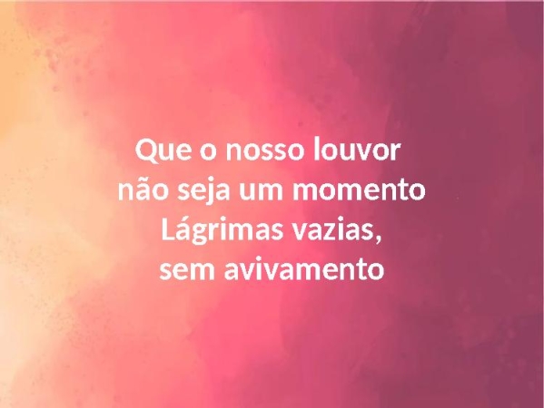 - Que o nosso louvor não seja um momentoLágrimas vazias,sem avivamento