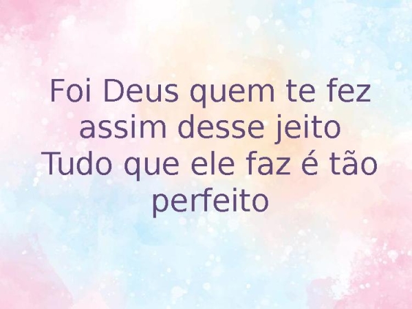 - Foi Deus quem te fez assim desse jeitoTudo que ele faz é tão perfeito