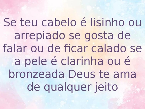 - Se teu cabelo é lisinho ou arrepiado se gosta de falar ou de ficar calado se a pele é clarinha ou é bronzeada Deus te ama de qualquer jeito