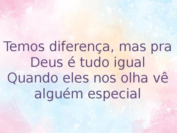 - Temos diferença, mas pra Deus é tudo igualQuando eles nos olha vê alguém especial